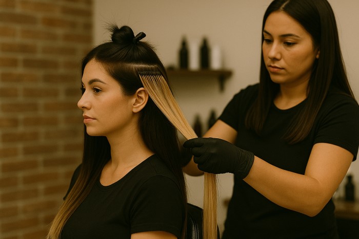 • Thực hiện nối tóc: Sử dụng kỹ thuật hiện đại, chọn sợi tóc có màu và độ dài phù hợp với tóc thật.