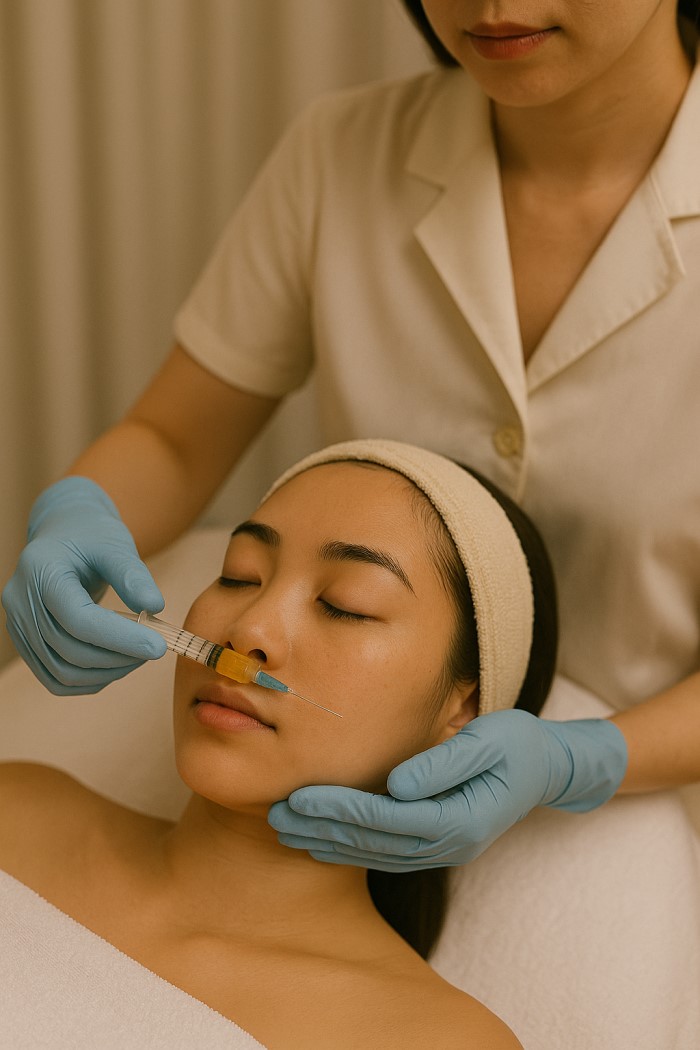 Tiến hành PRP: Tiêm vi điểm hoặc kết hợp phi kim/lăn kim để đưa PRP vào sâu trong da.